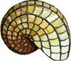 巻貝の流線型を忠実にステンドガラスに。小さいながらも光をともしたときの美しさには言葉を失います。 職人さん珠玉の一品です。 |